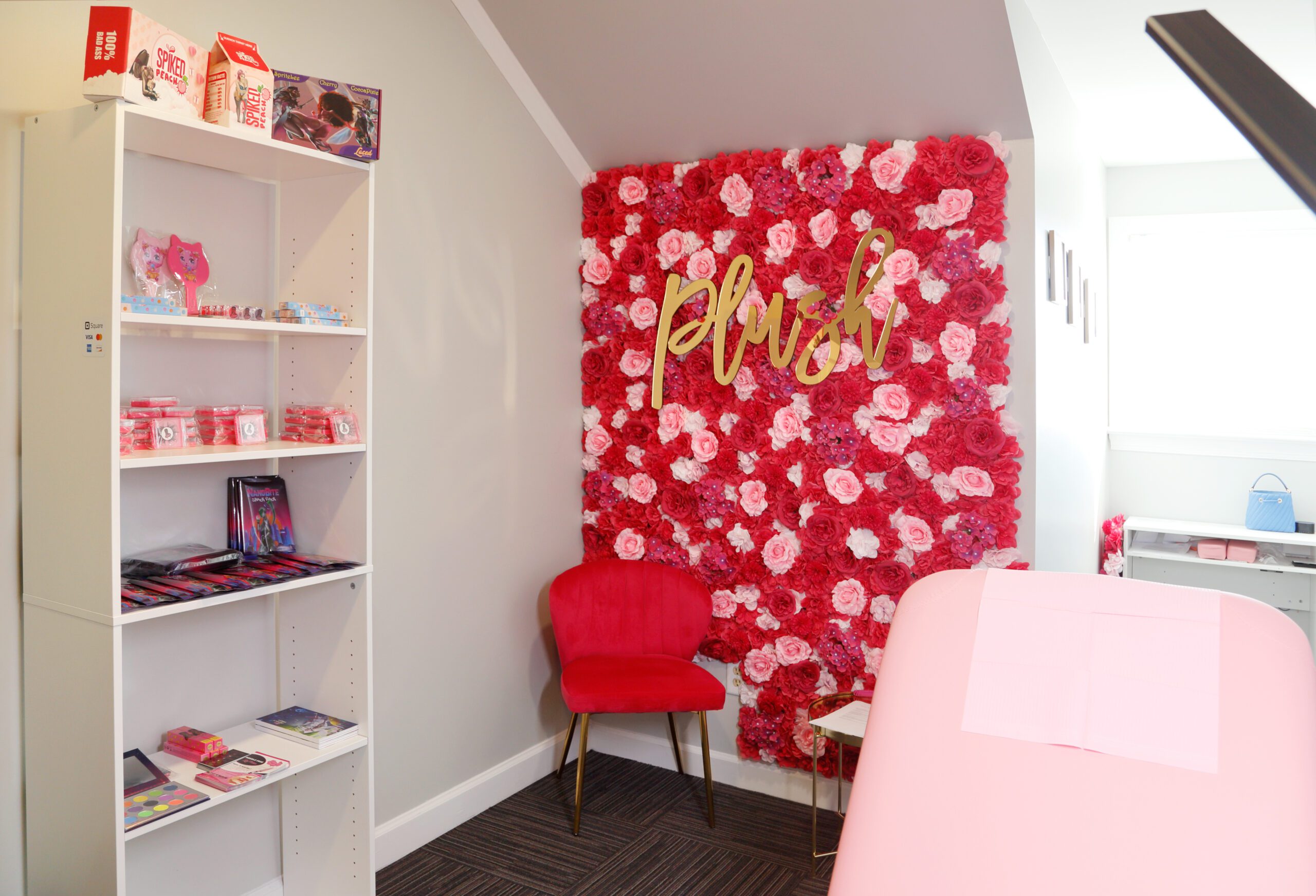 Depending on your line of business, you may want to add color or an accent wall like the one pictured below by Office Ours tenant Plush Beauty. This flower wall adds color and a unique look to her office that welcomes clients when they come in for services. Choose colors for your office similar to your business logo and theme. Your business will look unique and stand out by adding your business colors and logo.